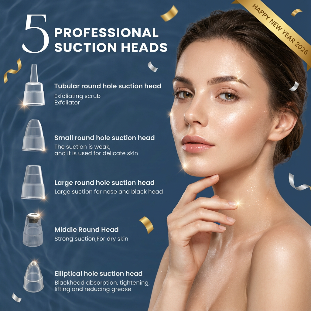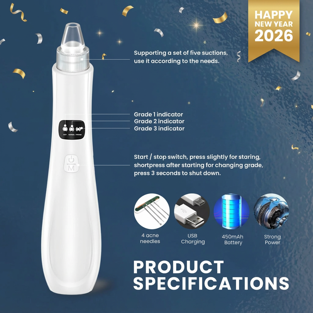 Your GlowMint kit includes: the Pro Extractor device, 5 professional suction tips (for different areas and skin types), USB charging cable, and a quick-start guide. Everything you need to start seeing results right away—no additional purchases required.